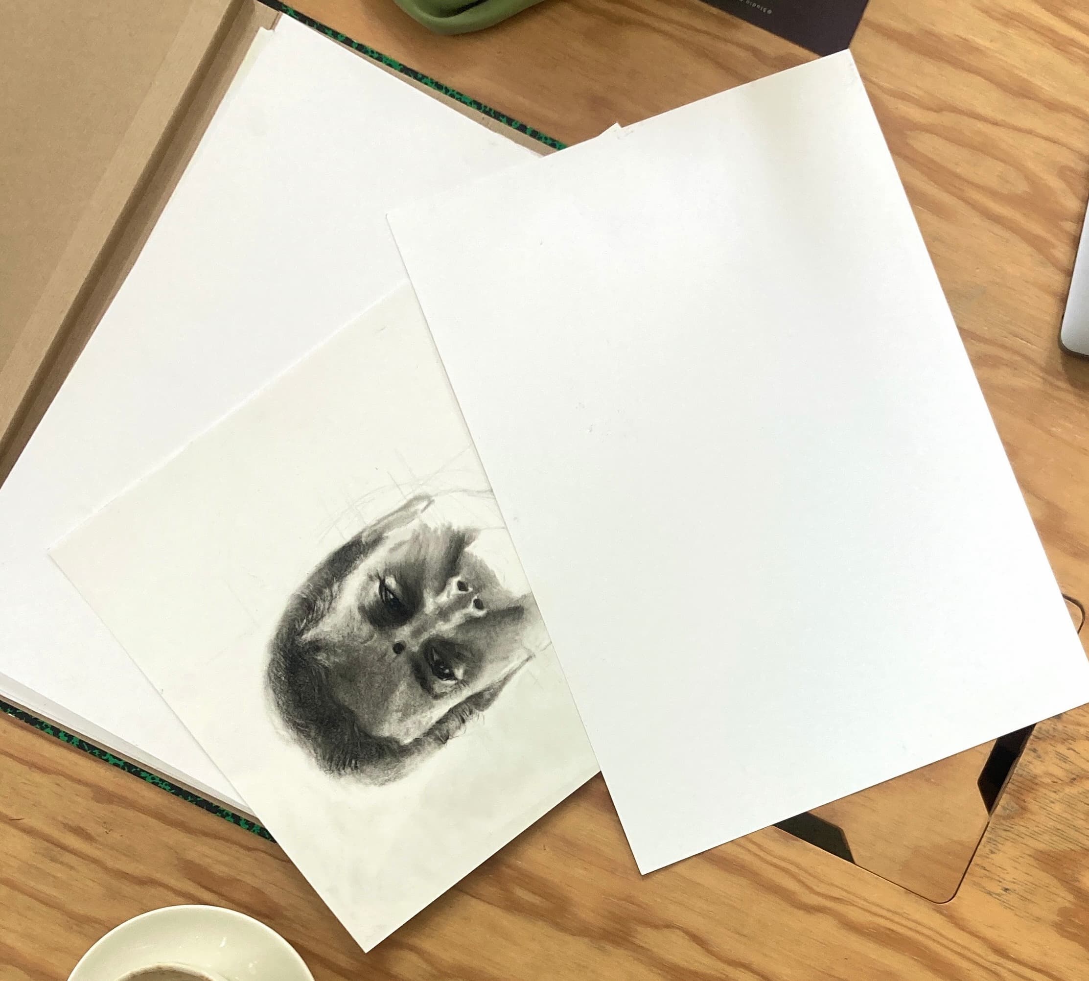 Im Rahmen eines Porträtprojekts setzt sich Vijitha mit Bildern ihrer Mutter auseinander. Bei der Wahl der Vorlage liess sie sich von der indischen Künstlerin Amrita Sher-Gil inspirieren, die in ihren Porträts vor allem die starken Ausdrücke der von ihr porträtierten Frauen einfing. Es ist schwierig, uns geliebte Personen zu zeichnen, da wir jede Nuance dieser Person kennen. Gleichzeitig stellt sich die Frage, ob das Bild überhaupt bis zuletzt fertiggestellt werden muss. Die Wirkung des Bildes kommt auch ohne Vollendung ausreichend zum Ausdruck. Eine Unvollendung lässt nicht am Können der Künstlerin zweifeln. Zudem ist der Prozess der Entstehung eines Bildes wichtig und darf auch für sich selbst stehen. Es braucht aber Mut, ein Bild nicht fertigzustellen. Vijitha weiss noch nicht, ob dieser Ansatz für dieses Bild der richtige ist.